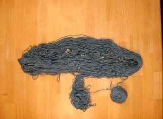 I start to wind the ball but with the help of the kids and a couple cats, the skein went from looking like this: